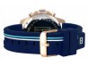 Oryginalny pasek do zegarka marki Tommy Hilfiger TH1791474 gumowy w kolorze granatowym, sprzączka wykonana ze stali nierdzewnej w kolorze różowe złoto połysk z logo marki.