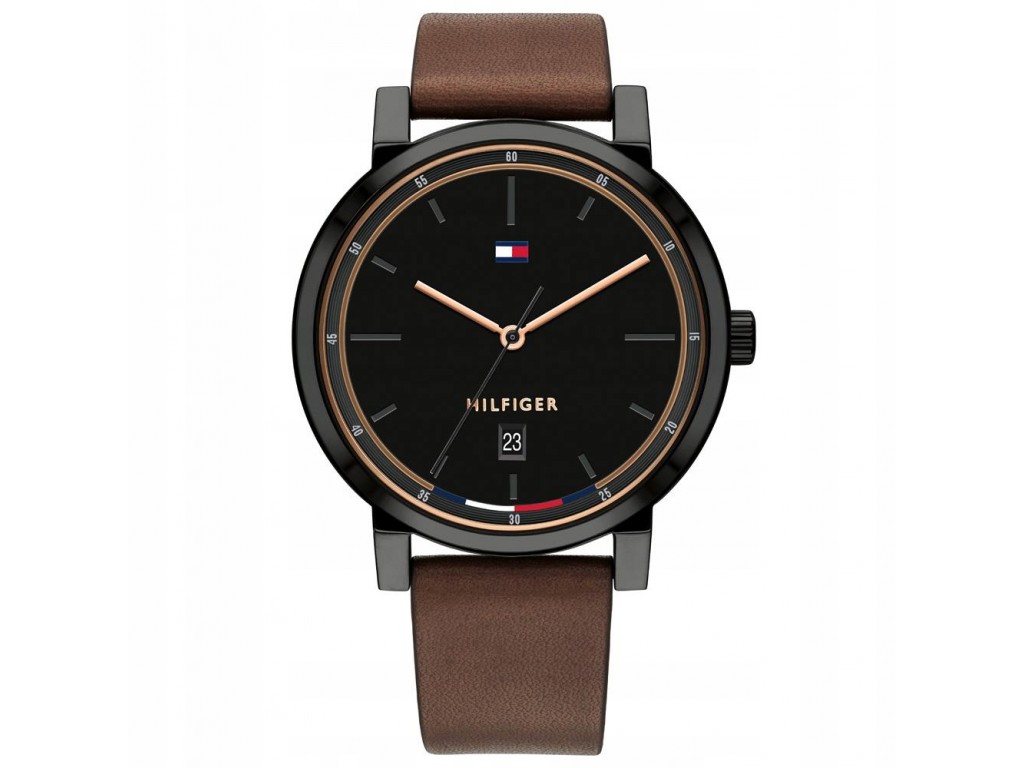 Oryginalny pasek do zegarka marki Tommy Hilfiger TH1791736, wykonany ze skóry naturalnej w kolorze brązowym, sprzączka wykonana ze stali nierdzewnej w kolorze czarnym połysk z logo marki, bez przeszycia, gładki.