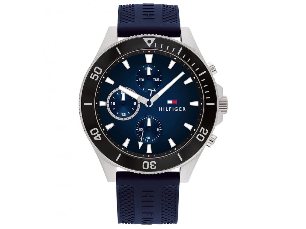 Oryginalny pasek do zegarka marki Tommy Hilfiger TH1791920 silikonowy w kolorze granatowym, sprzączka wykonana ze stali nierdzewnej w kolorze srebrnym połysk z logo marki.