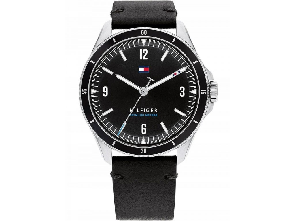 Oryginalny pasek do zegarka marki Tommy Hilfiger TH1791904, wykonany ze skóry naturalnej w kolorze czarnym, sprzączka wykonana ze stali nierdzewnej w kolorze srebrnym matowym z logo marki.