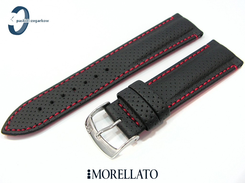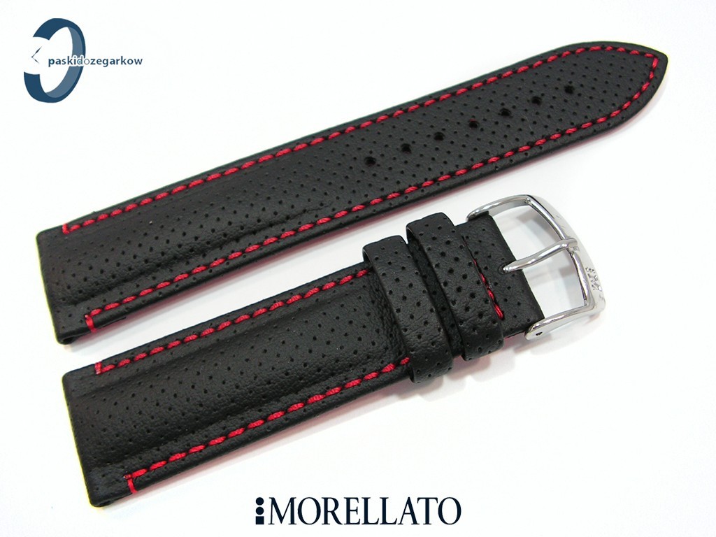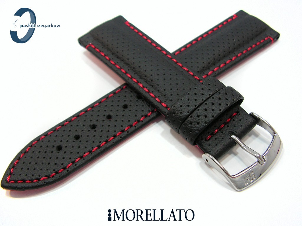 Pasek Morellato RACE czarny skórzany czerwone przeszycie 24 mm